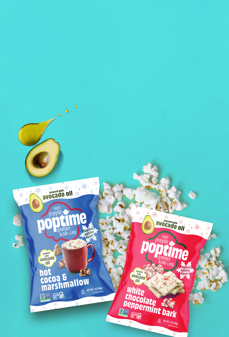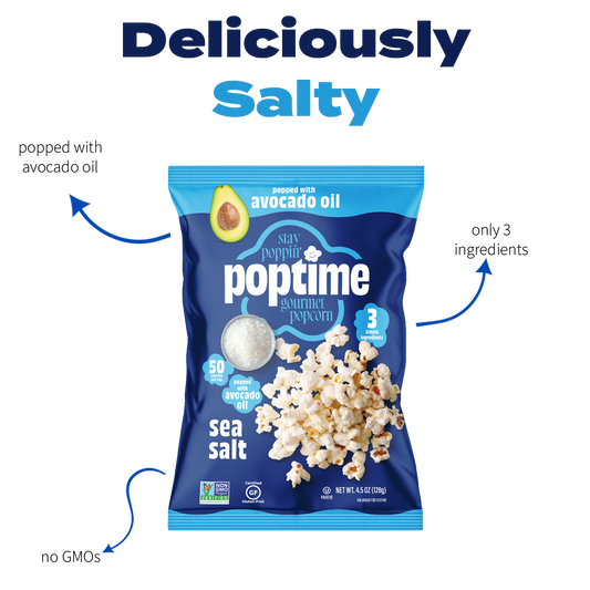 Same crave-worthy crunch, now popped with avocado oil and given a fresh new look! We’ve taken everything you love about Poptime and made it even better—upgraded ingredients, bold flavors, and a sleek new design. It’s the same popcorn you can’t get enough of, just taken up a notch!