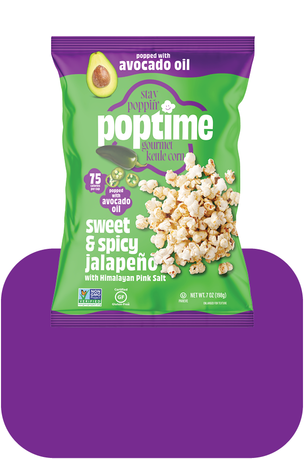 Spice things up with our fiery flavor fiesta! Our Sweet & Spicy Jalapeño Kettle popcorn made with avocado oil is like a salsa dance party in your mouth, with just the right amount of kick to keep you grooving. Let Poptime be your salsa partner on this caliente adventure—it’s sure to make your taste buds sizzle