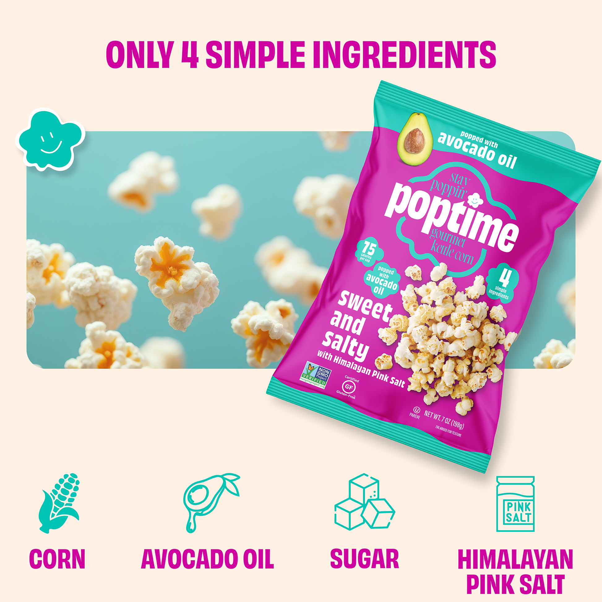 Get ready to taste the sweet side of life! Our Sweet and Salty popcorn made with avocado oil is like a flavor carnival for your taste buds, with twists and turns of sugary sweetness and salty surprises. Let Poptime lead the way to snack-time bliss—it’s a flavor-packed journey you won’t want to miss.